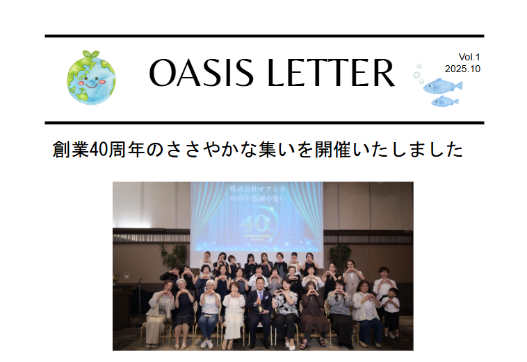 創業40周年の企画としてスタッフの「私のオアシス物語」を募集しました。心打たれた物語をスタッフ全員の投票をし、3名の方が選ばれました。物語は次号掲載します。お楽しみに!