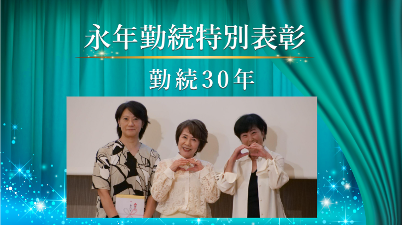 勤続30周年を迎えた木村さん、飯星さんのお二人に、長きにわたり会社を支えて続けてくれたことに感謝を込めて表彰しました。「この仕事は天職だと思っています。これからも頑張ります」(飯星)